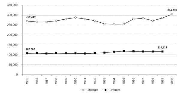 En 2009, 52,9 % des naissances ont eu lieu hors mariage selon l'INED.