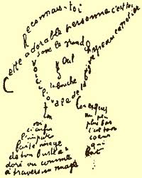 Les documents présentés ici sont des calligrammes, c'est-à-dire des poèmes dessinés. C'est à Guillaume Apollinaire (1880-1918) que nous devons le poème dessiné, dont les plus célèbres sont incontestablement le Poème à Lou et Il pleut.