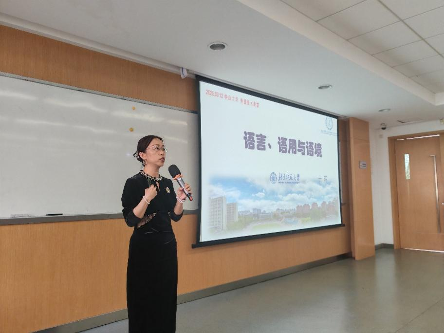 讲座的最后,于晖教授再次强调了情景语境作为语言的生命力之源的重要性。通过中英文对照案例,于教授向师生们阐明,同一句话可能传递抱怨、调侃或单纯陈述。她强调,语言教学不应局限于语法正确性,更需培养学习者的语用意识,使其能够根据情景选择恰当表达,实现有效沟通。